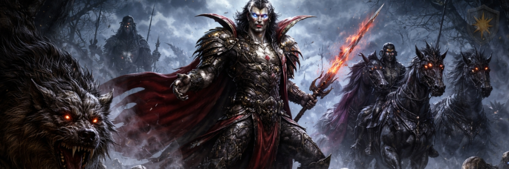 This list wins by seizing the centre early, blocking movement with manifestations, and forcing opponents into bad charges. Barrow Guard and Wight King anchor the middle, Blood Knights and Prince Vhordrai punish overextension, and Dire Wolves control tempo and battle tactics. If played patiently, the list snowballs hard from turn 2 onward.